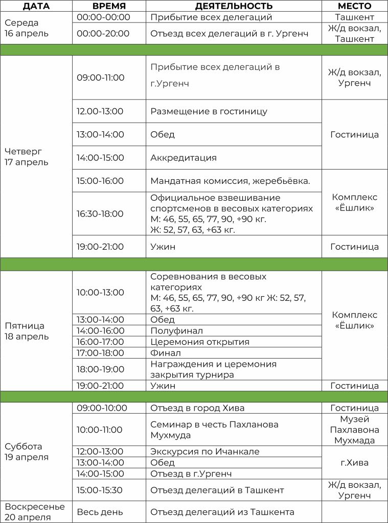 ПРОГРАММА ТУРНИРА